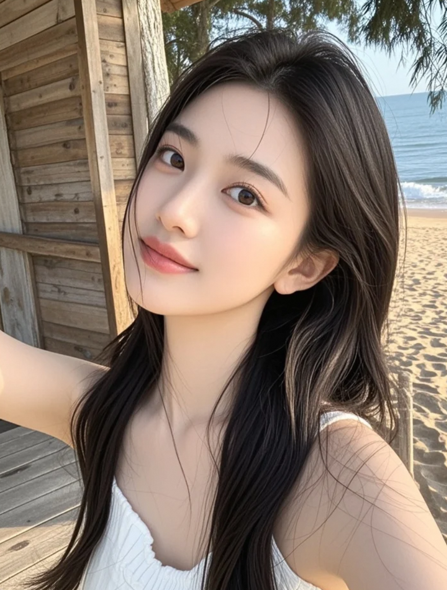 碧波为幕,发丝为诗,共写此刻浪漫?