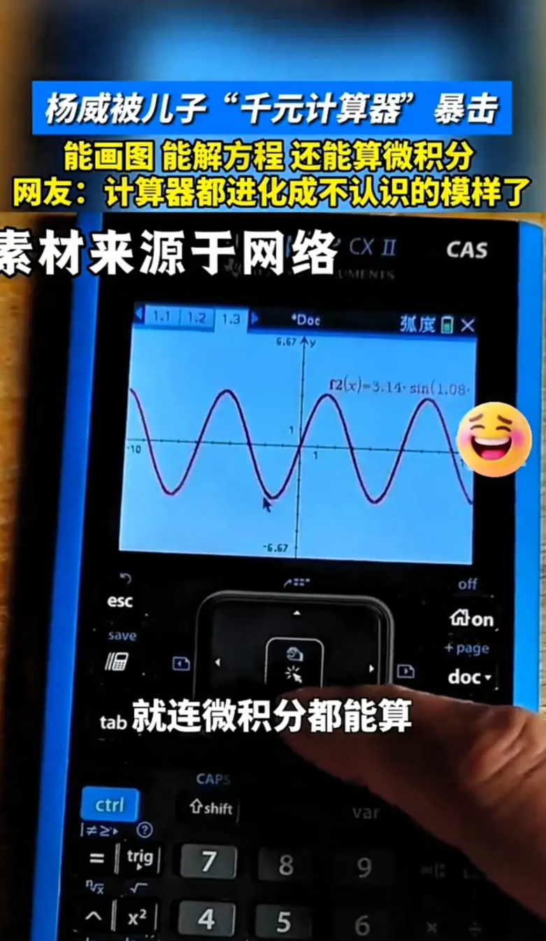 男子儿子表示,这款计算器不仅能计算,还能解方程,画图、解方程,甚至算微积分,功能很强大。