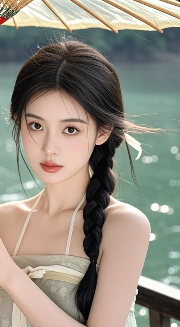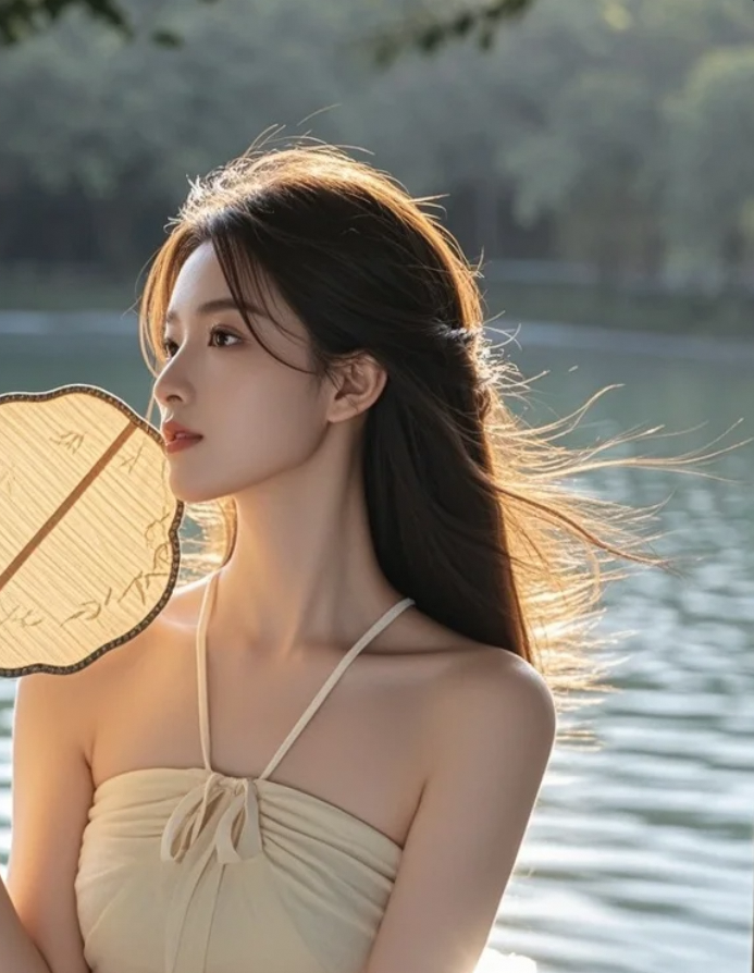 她不说话,只轻轻一扇,便搅动了整片湖光