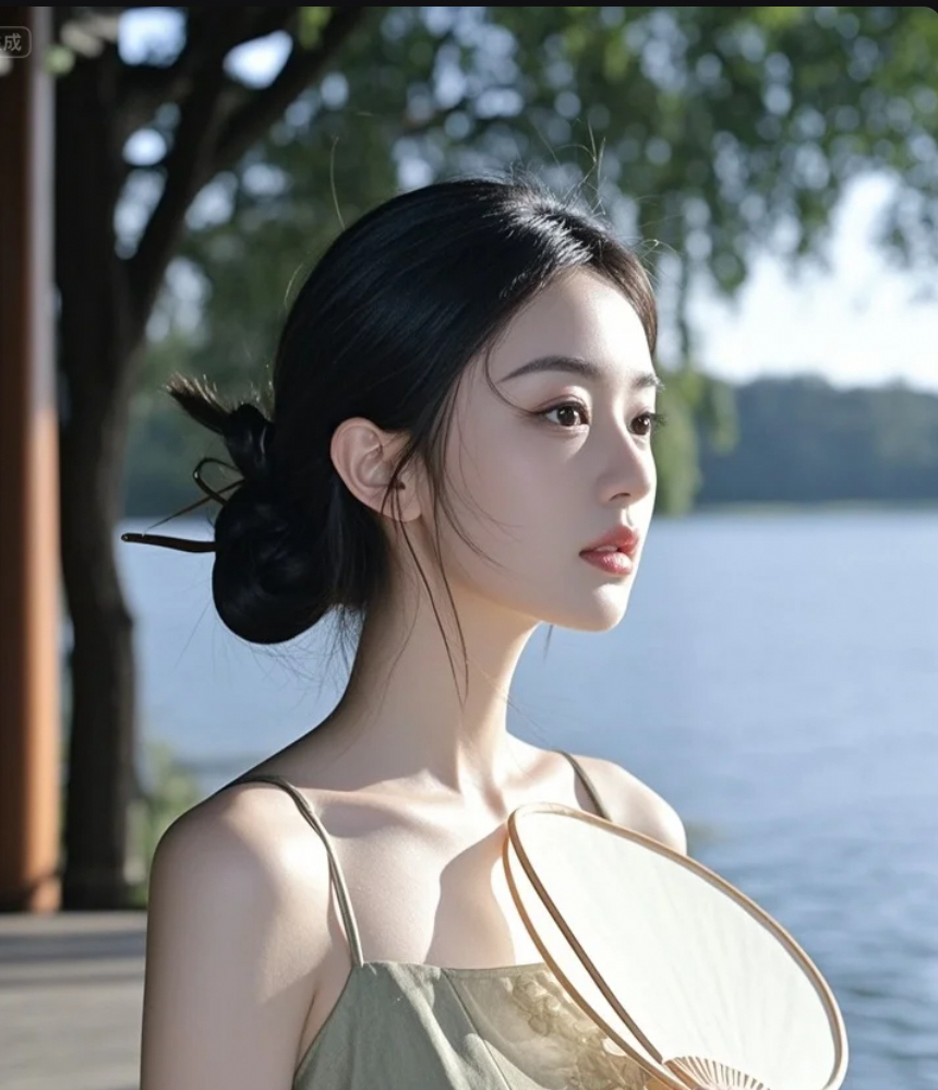 她不说话,只轻轻一扇,便搅动了整片湖光