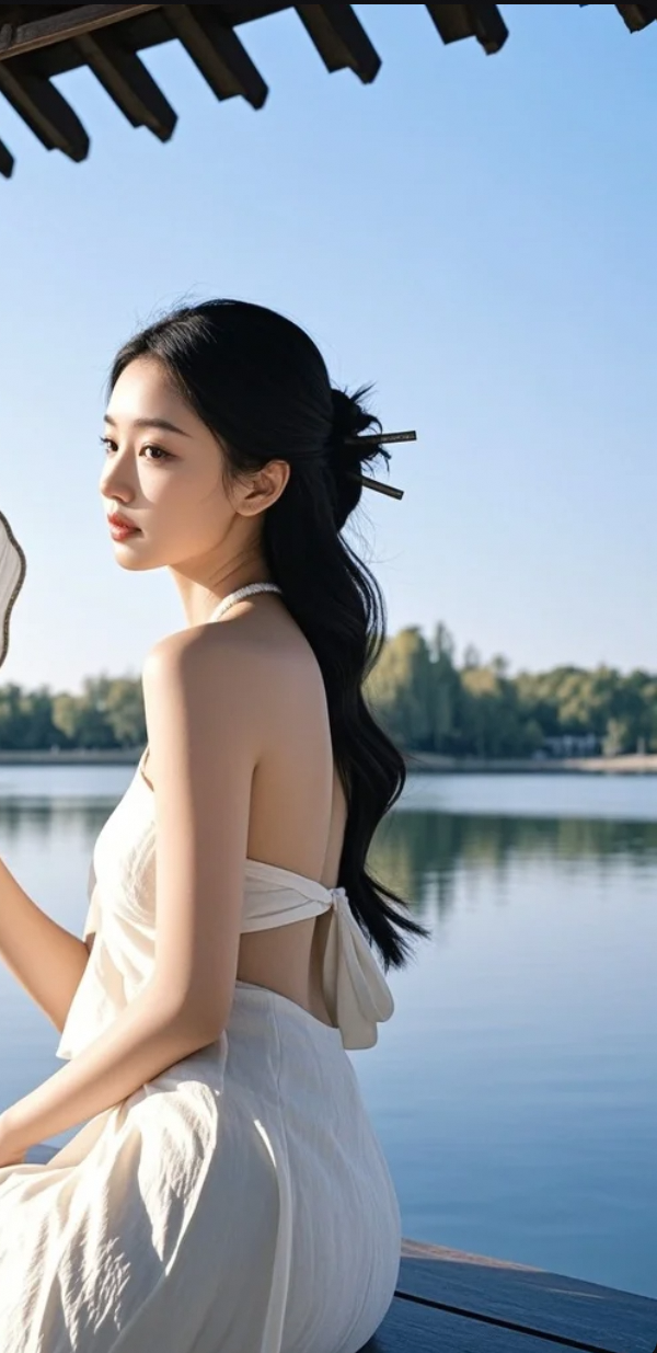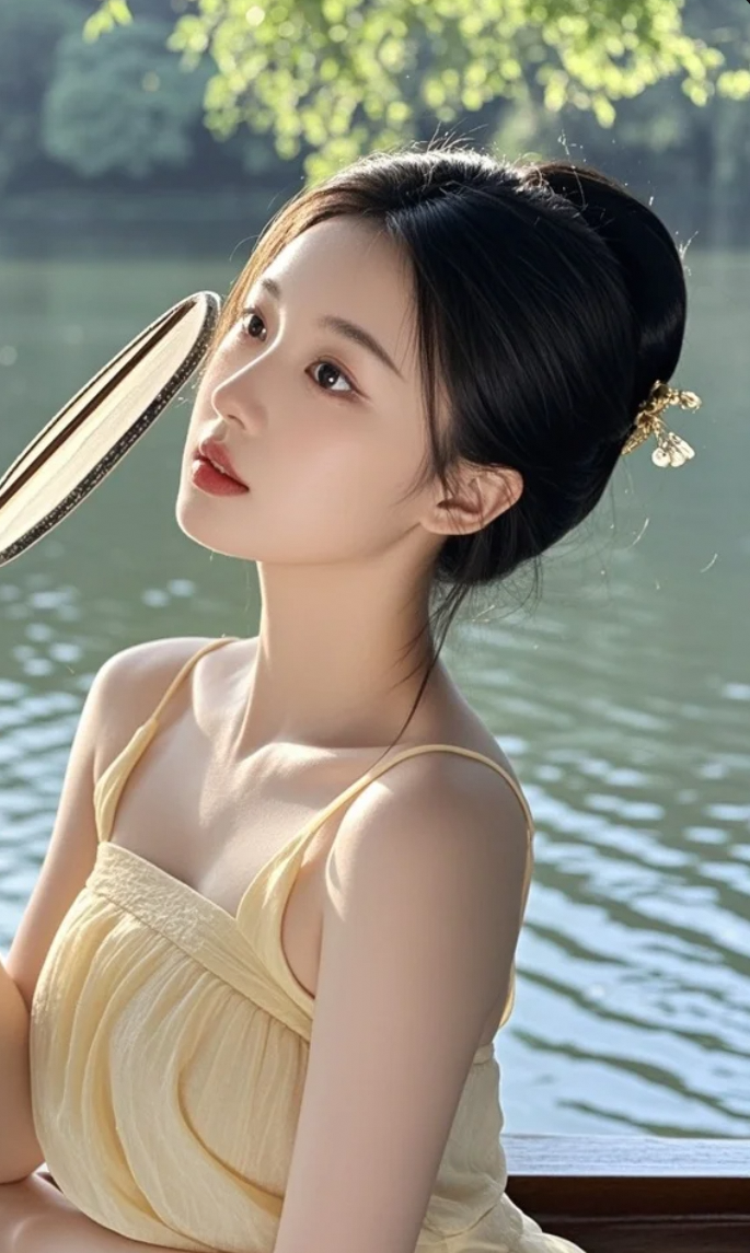 一袭古裙,一把折扇,她在湖畔写下一首无声的词