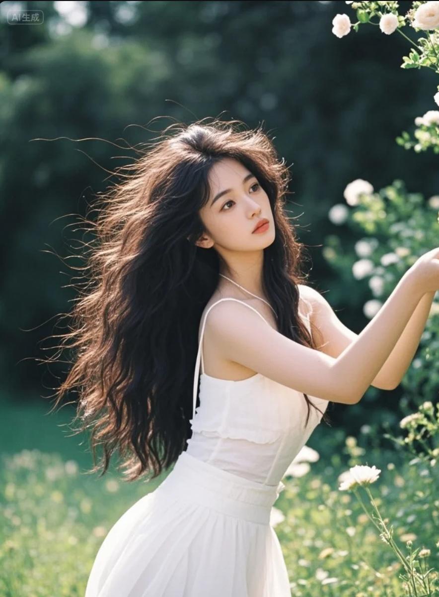 星尘落肩: 深夜花园,点点微光栖息在她发梢。