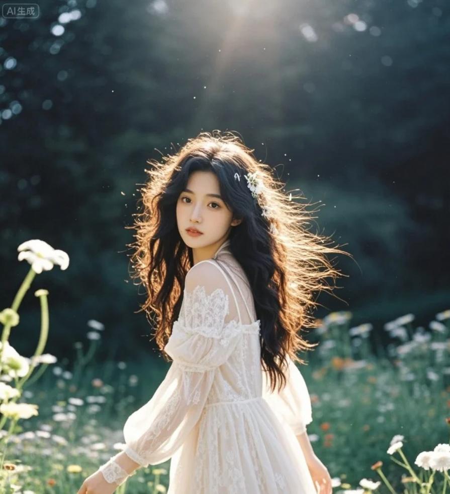 光尘之舞: 尘埃在光柱中飞舞,她静立其中,如时间静止。