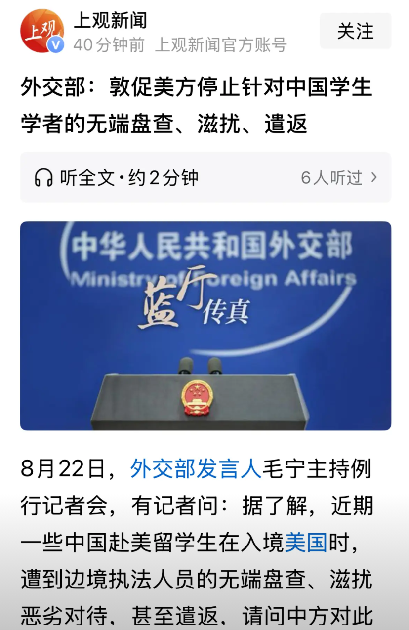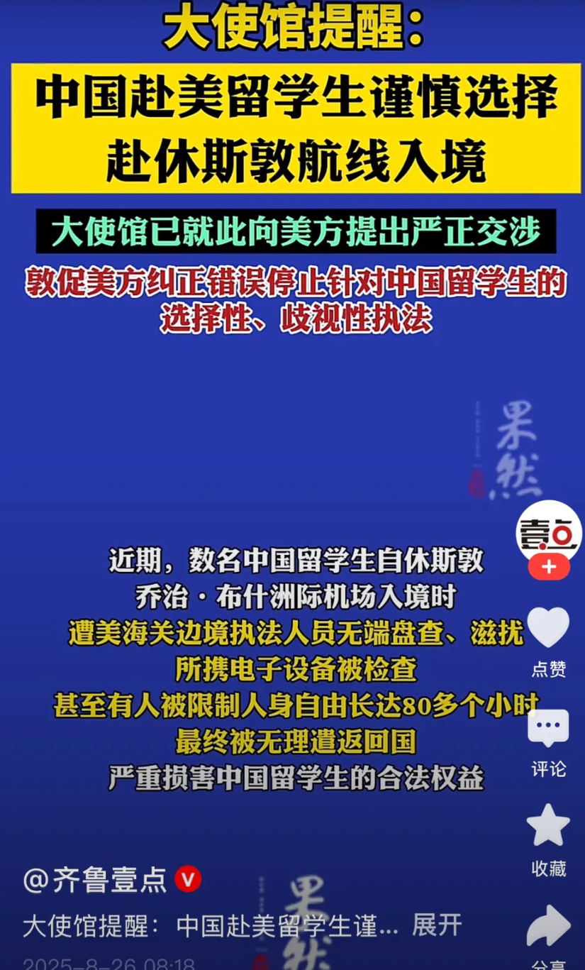 日前外交部提醒赴美留学生,不要从休斯顿入境!开学季,赴美留学充斥着越来越多的变数,入境入学本只是开始,后面还有九九八十一难,但目前入境第一关就成了玄学。 在美国人才遏制战略之下,即便拿到签证,也可能随时在入境时取消,尤其是在德州。外交部批评是必要的,虽然也没有太大作用。