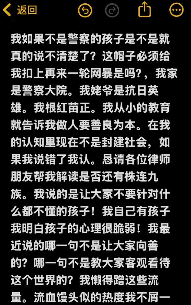 张伦硕因为替黄奕女儿说话被网友吐槽 他回应说现在社会没有株连九族,不应该把错怪在