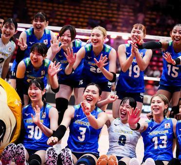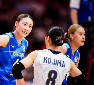 赛后,日本女排全队是开心地合影,庆祝她们拿到了小组第一。石川真佑、佐藤淑乃和和田由纪子这边攻三驾马车,依然是球队的晋级工程。
