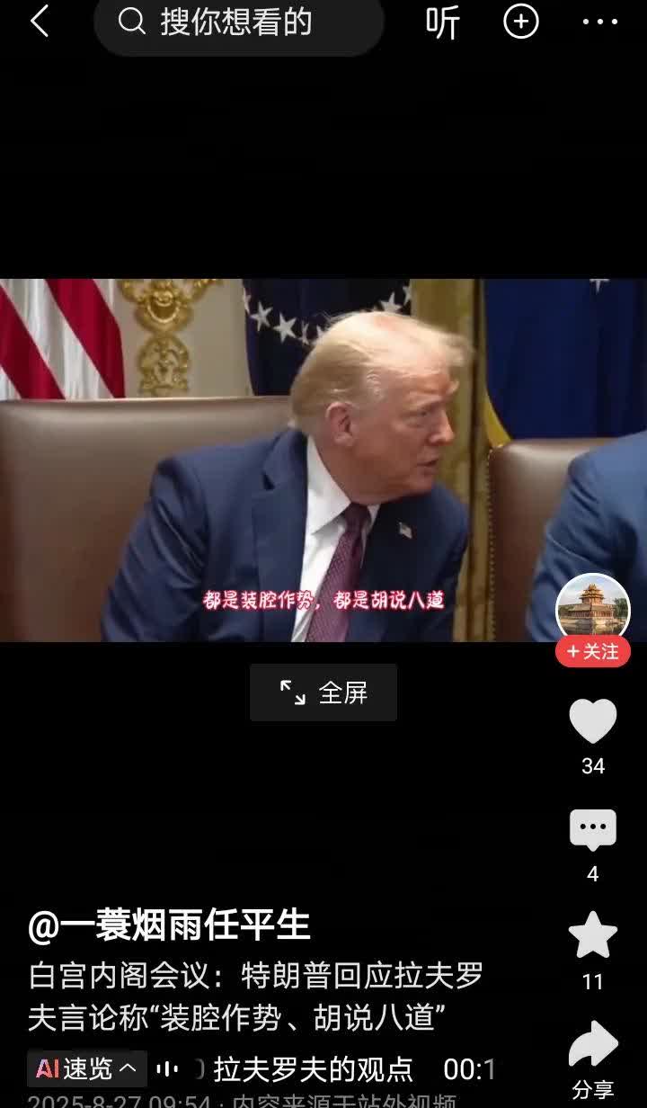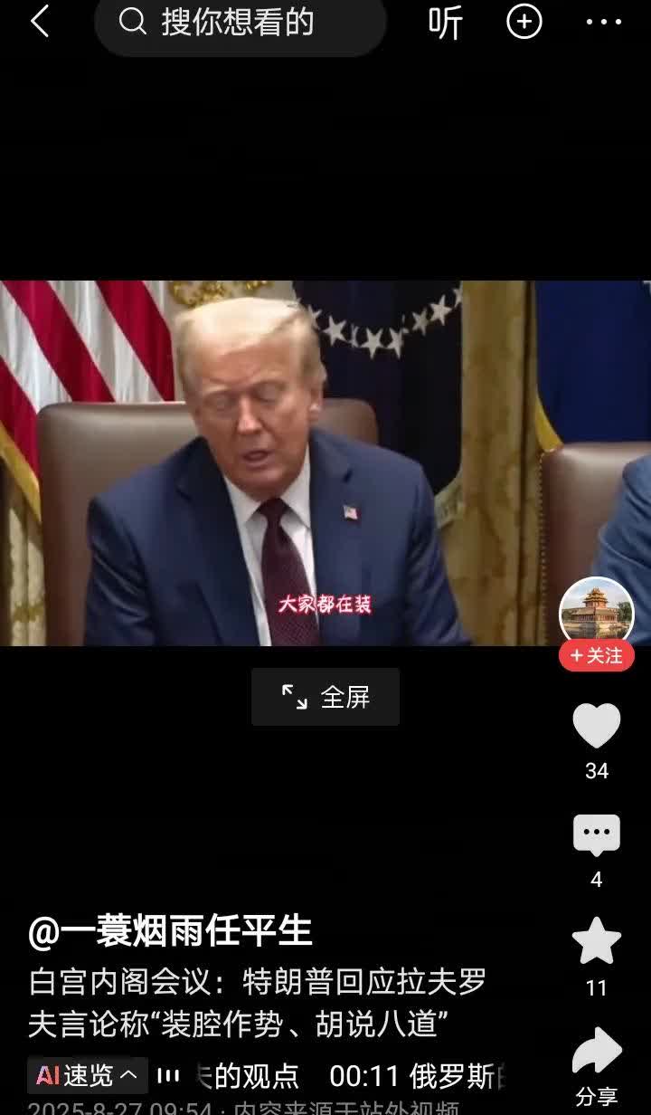 特朗普在内阁记者会上一点不给俄外长一点面子,他胡说八道 白宫内阁会议,特朗普回应俄外长拉夫罗夫言论:“装腔作势,胡说八道。” 俄罗斯的事,俄乌战争的事,普京说了算!拉夫罗夫算老几?
