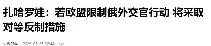 俄罗斯突然宣布!8月27日俄外交部发言人扎哈罗娃在莫斯科放话:如果欧盟再收紧对俄外交官的行动限制,俄方将“对等反制”。 网友表示:扎哈罗娃一向以强硬著称,这次直接挑明“对等反制”,摆明了要和欧盟硬碰硬。俄罗斯人的脾气大家都懂,你压得越狠,他反弹越猛。 欧盟那边也不是善茬,自从俄乌冲突爆发,布鲁塞尔已经批了好几轮制裁,到2025年6月,针对俄罗斯的非贸易制裁已经堆到了3万多项,创下了世界纪录。 从冻结俄罗斯央行资产到把俄银行踢出SWIFT系统,再到能源限价令,欧盟对俄罗斯的围堵可以说是全方位无死角,现在这股制裁风暴刮到了外交领域,显然是想在外交战场上再给俄罗斯来个“锁喉”。 其实这种外交官驱逐战在俄欧之间早就不是新鲜事了,今年4月,捷克刚驱逐18名俄外交官,俄罗斯反手就把20名捷克外交官请出了莫斯科,波兰跟风驱逐3名俄外交官后,俄方直接加码驱逐5人作为回敬。 这种你来我往的减法游戏已经成了俄欧冲突的常规操作,就像两个赌气的邻居,你摔我一个杯子,我必砸你一个碗,现在欧盟又想收紧对俄外交官的行动限制,这步棋其实藏着更深的算计。 要知道,欧盟对俄制裁名单已经从2021年的233个个人和实体,暴涨到了2100多个,连俄罗斯的金属、能源企业都没能幸免,外交上的限制本质上是这种制裁逻辑的延伸,既然经济领域压不倒你,那就从人员往来上进一步孤立俄罗斯。 但欧盟可能忘了,俄罗斯最擅长的就是以牙还牙,之前美国驱逐10名俄外交官,俄方不仅等额反制,还直接建议美国驻俄大使回国好好商量,这种看似克制实则强硬的回应,让西方领教过多次。 扎哈罗娃这次放话绝非空穴来风,按照俄罗斯的一贯作风,欧盟要是真敢收紧限制,俄方很可能会立刻拿欧盟驻俄使团开刀,要么缩减使团规模,要么限制欧盟外交官在俄境内的活动范围,甚至可能提高签证审批难度,让欧盟外交官在俄罗斯寸步难行。 毕竟在2022年欧盟冻结俄罗斯外汇储备后,俄方就出台了一系列反制措施,从限制外汇流到规范电子支付,手段多得是。 不过话说回来,这种硬碰硬的架势对谁都没好处,中国社会科学院的研究早就指出,俄欧在能源和经济上的互补性其实很强,但现在双方却把关系套制裁变成了关系的主旋律,3万项制裁背后是无数断裂的商业联系,一次次驱逐背后是不断萎缩的外交空间,当外交官都没法好好说话时,谁来为紧张局势降温?谁来推动危机转机? 说到底,俄欧现在就像陷入了以牙还牙的怪圈,你对我越强硬,我就对你更不客气,但制裁这东西就像弹簧,压得越紧反弹力越大,欧盟以为靠制裁能让俄罗斯屈服,却没想到俄罗斯硬生生在制裁墙下挖出了新的生存通道。 现在双方又在外交领域较劲,只会让本就冰封的关系雪上加霜,毕竟外交的本质是沟通,而不是比谁先把对方的大使馆清空,在俄乌冲突进入持久战的当下,这种不断升级的外交对抗,最终只会让谈判的大门越关越紧,让和平的曙光越来越远。