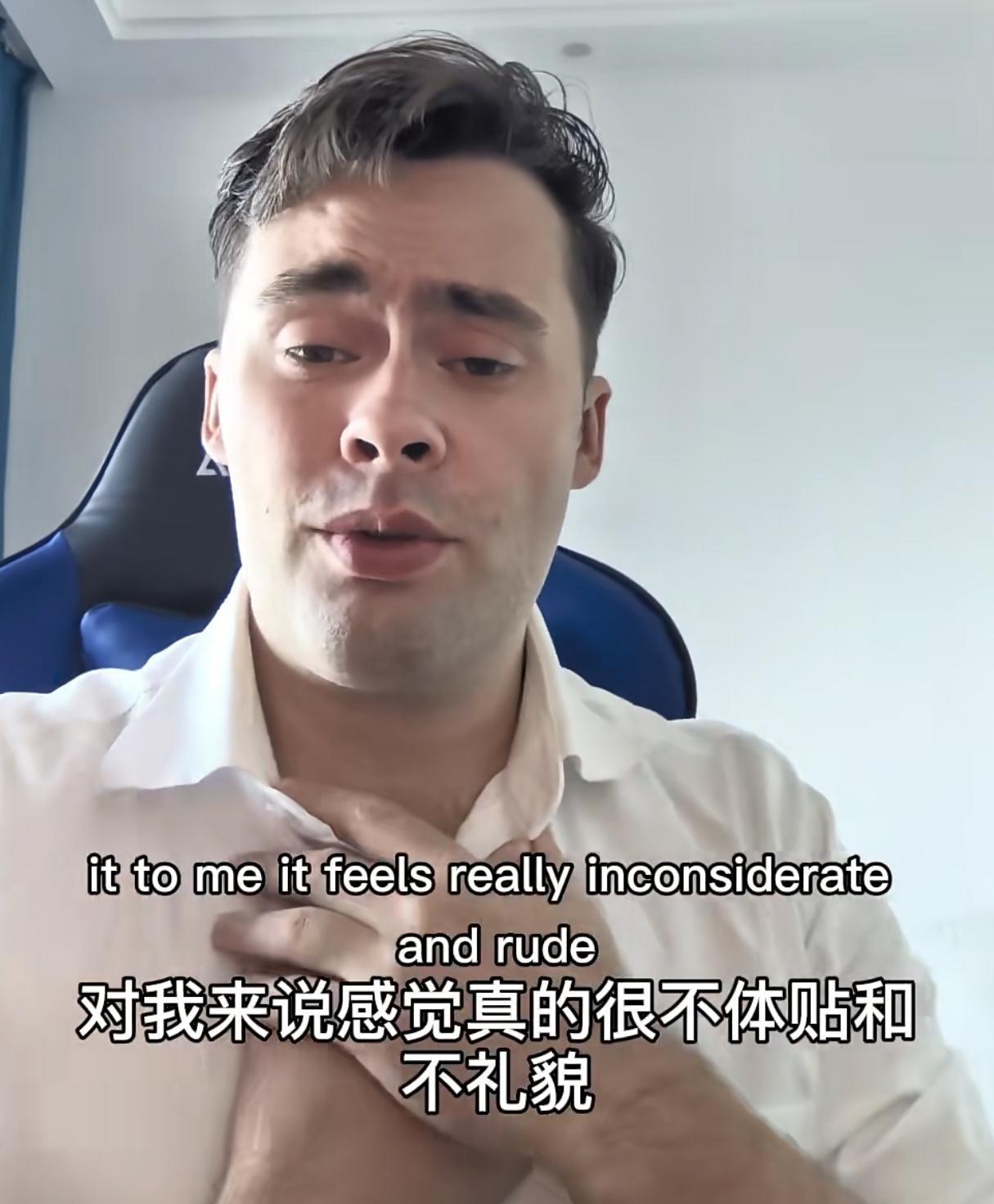 在中国赚钱还嫌中国人不文明,这位在浙江从事教育工作的英国老铁,看见一个小姑娘在地铁上席地而坐,让他感觉不体贴不礼貌,会干扰到别人。先不说小姑娘并没有影响谁只是太累了想休息,英国伦敦流浪汉就在大马路上躺着他不说,伦敦地铁又老又旧他也不说,偏偏来了中国有了底气去批评一个小姑娘。