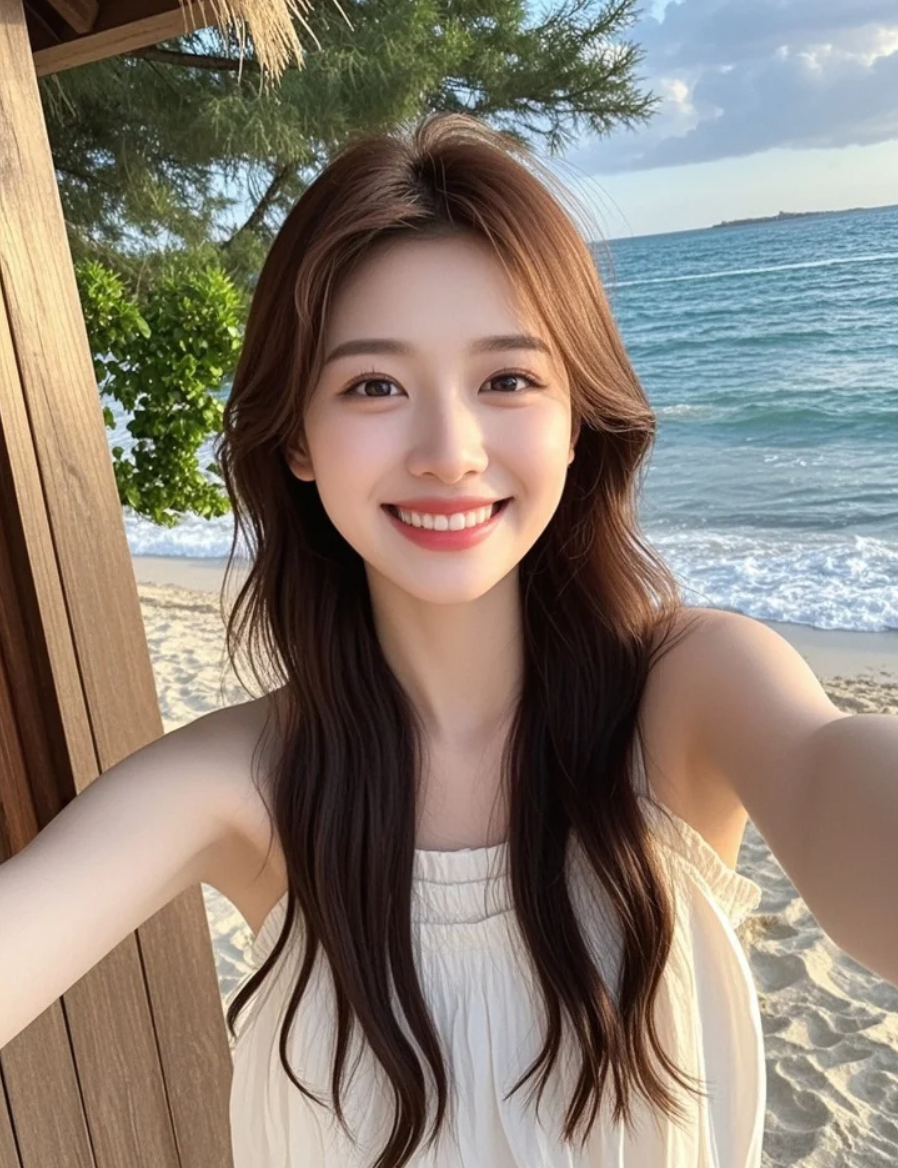 海风吻过发梢,这帧笑容只给你看,心动了吗?