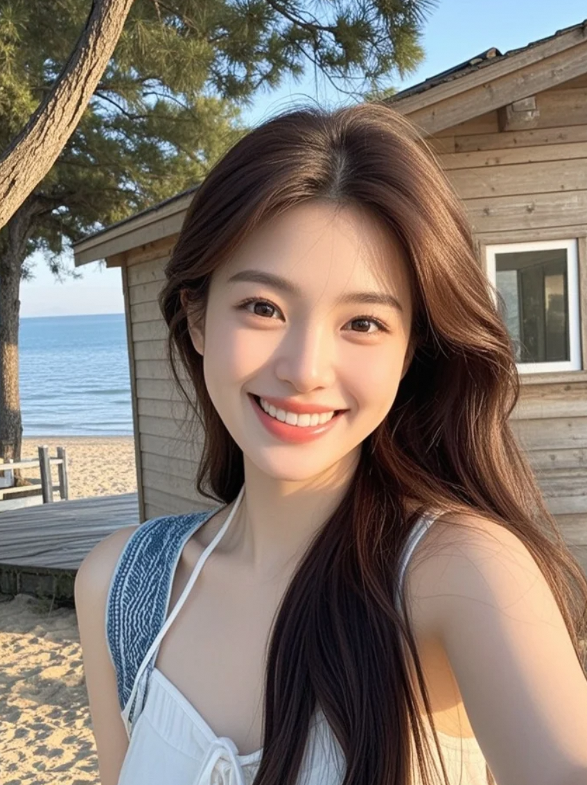 沙滩自拍ing,海风撩发,你猜浪花说了什么悄悄话?