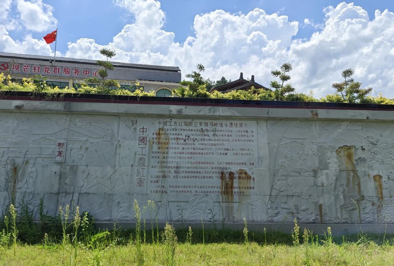 夏日炎炎,睛空万里,开车从重庆秀山去贵州铜仁甘龙镇,途经一处绿树掩映的红军纪念碑,在如此环境优美、空气清新的山谷中,竟然有红军纪念碑,在好奇心驱使下,我停车去参观了解一下。 我到这里时,正赶上维护保养人员已经给整个纪念碑重新修饰并给文字描红后,正在拆除脚手架。中国工农红军第三军“倒马坎战斗纪念碑”几个大字刚刚用鲜艳的红油漆刷涂一新,象征着红军烈士鲜血染红的文字在夏天明亮的日光照射下闪烁着耀眼的历史光芒。 经过实地瞻仰“中国工农红军第三军倒马坎战斗纪念碑”,详细阅读了介绍,终于知道了,九十多年前发生在这里的人和事,心中对革命先辈抛头颅洒热血浴血奋战换来了今天幸福美好的生活,充满了无限的敬佩和感激。 红三军倒马坎战斗遗址位于重庆市秀山土家族苗族自治县隘口镇坝芒村长五间组。这里是从贵州铜仁甘龙镇进入重庆秀山的交通要道,沿途山高谷深,旧时,唯一的道路最窄处仅容一马通过。倒马坎这个地名据说源于古时有一官员骑马经过此地,马匹掉入河谷而得名“倒马坎”。 据史料记载,1933年底,贺龙率领的红三军从湘鄂西革命根据地向川东南的彭水、黔江、酉阳、秀山挺进,创建湘鄂川黔边新苏区。 1934年5月,红三军智夺彭水后西渡乌江,向黔东进军。贺龙领导红三军在黔东以南腰界为大本营到各县发动群众,组织游击队,开展土地革命,建立苏维埃政权,很快建立起黔东特区革命根据地。 当时属于四川军阀刘湘势力范围的秀山县县长赵竹君害怕红军进攻秀山,便动员土豪劣绅拼凑出一帮反革命地方武装与红军死磕到底。秀山西路民团匪首杨卓之利用倒马坎这个险要道口为重点防区,修筑战壕、工事,拼凑了1000多人组成“剿共精选队”,与其它方向的川军民团构筑了百里防线阻击红军东进发展革命根据地。 1934年,江西瑞金的中央红军第五次反围剿失利,形势急转直下,当年10月开始了万里长征。1934年8月30日拂晓,在贺龙亲自策划指挥下,红7师师长卢冬生率红7师从贵州松桃县火烧桥出发,兵分两路,分别占领倒马坎左右两翼制高点,准备从两翼向心对倒马坎一带敌军发动钳形攻势。 8月30日,秋高气爽,当地进入收获季节,村寨的打谷场、大晒坝到处是摊开晾晒的黄色玉米和稻谷。当天正值防线上的集市坝芒赶场,街上到处是背着竹背篓的村民摩肩接踵在逛街购物。 冉瑞才带领一个红军侦察排化装成百姓悄悄混入人群,一枪未发智擒镇子上的指挥所守敌,占领了狮子背。下午4时,红军战士对空鸣枪,疏散赶场百姓,冲过坝芒街,进击倒马坎,经过激战,将守敌打得落花流水。杨卓之下令撤退,守敌四散而逃,有人藏进山洞,有人躲进山林,红军乘胜追击,抓获许多俘虏,战斗结束时天色已黑。第二天,红军主力直捣杨卓之老巢——平所和新院、白沙、龙凤以及坝芒等地,打土豪分田地抄了杨卓之老家。 这场战斗中共俘敌40余人,缴枪30余支,红军战士都是久经沙场的老兵,战斗中仅牺牲了两名战士,后来,牺牲的两名红军战士被当地群众分别安葬在气坑坡和硝田两处。 1985年11月,秀山土家族苗族自治县人民政府在倒马坎建立战斗纪念碑。原红三军九师政委、全国人大副委员长廖汉生为碑题名:中国工农红军第三军倒马坎战斗纪念碑。碑文是:山河有幸,倒马坎因红三军业绩载入史册;日月同辉,红三军英名与倒马坎群山共存。 现在,这里已经全面开发出来,建成红色旅游景点,设施完备,是一处很好的红色革命教育基地。