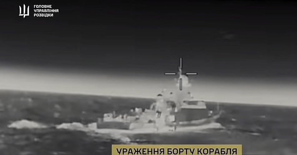28日,乌克兰安全局发射无人机击中一艘俄罗斯能发射“口径”导弹的军舰!
