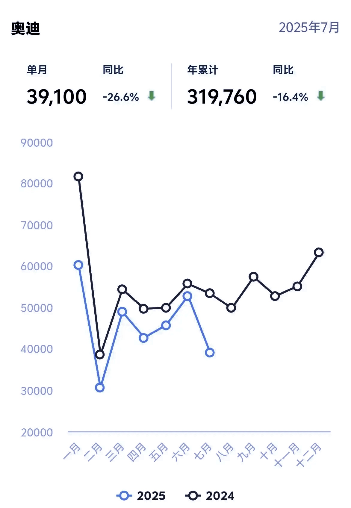 从图片可以看出,bba今年的销量和去年相比下滑严重,其中奔驰最严重,原因是降价幅度比宝马和奥迪小一些,面对国产新能源车的迅速崛起,以价换量最猛的两个豪华品牌是宝马和奥迪,A8入门本在三年前还要80多万,现在跌到60多万,A6L现在闪崩到30万出头,A7L和A6L一个价,也卖不动,A4L更惨,只要20万出头。宝马更猛烈,7系入门版在三年前卖接近100万,现在也是60多万,5系干到奥迪A6L一样的价格,曾经开5系的看不起A6L,现在已经成为患难兄弟,而宝马3系也干到20万出头了。本以为豪华品牌能撑一阵子,没想到这么快就顶不住了,只能说汽车市场变化太快。