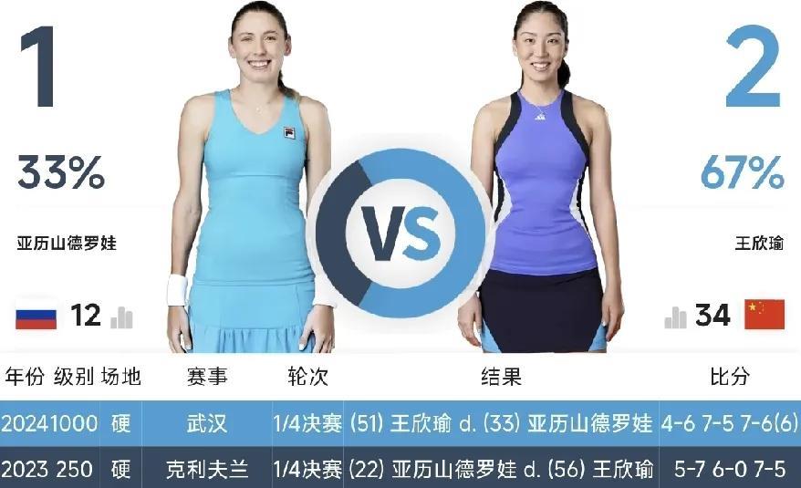 “国民好媳妇”做到“三点”准能打进到32强! 今晚美网将继续进行第二轮比赛,球迷们期盼王欣瑜继续加油! 首轮在球迷们加油助威声中,王欣瑜顽强的逆转战胜了多勒海德,球迷们功劳是有目共睹的! 今晚王欣瑜将迎战13号种子、俄罗斯选手亚历山德罗娃,两人之前有过3次交手记录,王欣瑜2-1领先,最近一次是在去年武汉公开赛上,王欣瑜也是逆转获胜。 交手记录2:1 一个是,赛前做好热身准备,手感热起来,要尽快进入比赛临界状态; 二个是,要发好一发,减少失误。 三个是,避免“双误”损失,发球前运气丹田,想好发球要领,尤其是二发,全场比赛“双误” 降低到3个以内,今晚比赛肯定赢。 #王欣瑜美网赛程#