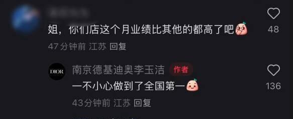 南京德基Dior柜姐发文,感谢邓为的带货,让该店业绩刷新记录,拿下全国第一