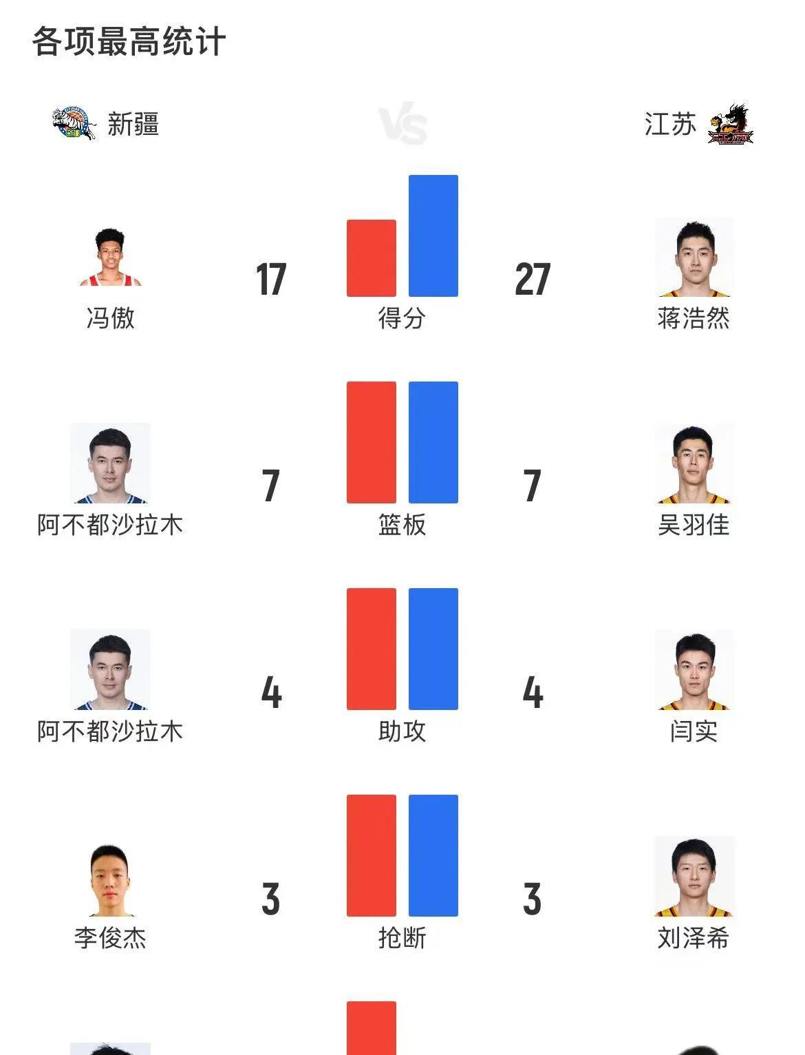 CBA夏季联赛(青岛站),新疆以66:59击败江苏,喜获两连胜。混血小将冯傲连续三场得分达两位数,此役他斩获球队最高的17分,另有4个篮板、3次助攻与2次抢断,投篮12投6中,堪称球队获胜的功臣之一。 阿布都沙拉木投篮8中5,高效地得到11分、7个篮板与4次助攻,持续发挥球队中流砥柱的作用。杨芮得到12分、6个篮板,葛浩然拿下14分,投篮5投5中,罚球7罚4中。 江苏队的蒋浩然得到全场最高的27分,投篮16投10中,三分球3投1中,怎奈队友不给力,未能实现逆袭获胜。#新疆男篮# #江苏男篮# #CBA夏季联赛# #冯傲#