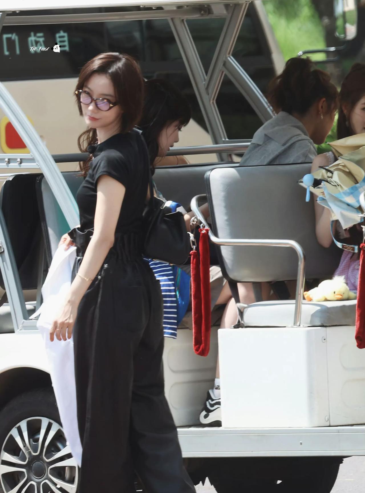 王珞丹那么瘦那么小,胸却挺大,黑色的T恤展露真实身材,这腰也好细,穿这种复杂的裤