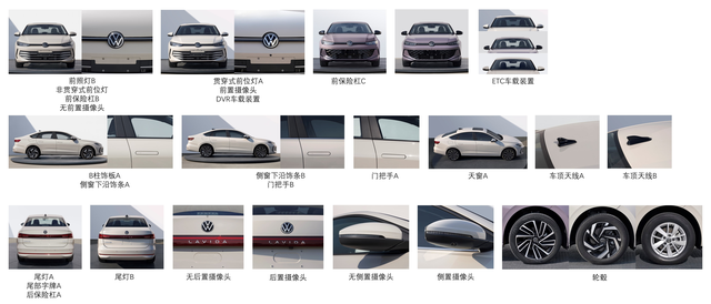 新款大众朗逸PRO的外形尺寸长为4720mm,宽为1806mm,高为1482mm,轴距为2688mm。最高车速为200km/h,总质量为1835kg,整备质量为1375kg。轮胎规格有三种选择:225/45 R17 91H、205/55 R16 91H和195/65 R15 91H,前轮距为1540mm,后轮距为1513mm。额定载客(含驾驶员)人数为5人。 在动力系统上,新款大众朗逸PRO为汽油车型,符合GB18352.6-2016国Ⅵ排放标准。发动机型号为DYZ,生产企业为上海大众动力总成有限公司,排量为1498ml,功率为118kW,最大净功率为118kW。ABS系统型号为MK120 ESC,生产企业为大陆泰密克汽车系统(上海)有限公司。 车辆可选装ETC车载装置,并配备汽车事件数据记录系统(EDR)。此外,车辆还可选装前照灯B、非贯穿式前位灯、贯穿式前位灯A、前保险杠B、前保险杠C、无前置摄像头、前置摄像头、B柱饰板A、侧窗下沿饰条A、侧窗下沿饰条B、门把手A、门把手B、天窗A、车顶天线A、车顶天线B、尾灯A、尾灯B、尾部字牌A、后保险杠A、无后置摄像头、后置摄像头、无侧置摄像头、侧置摄像头和轮毂。