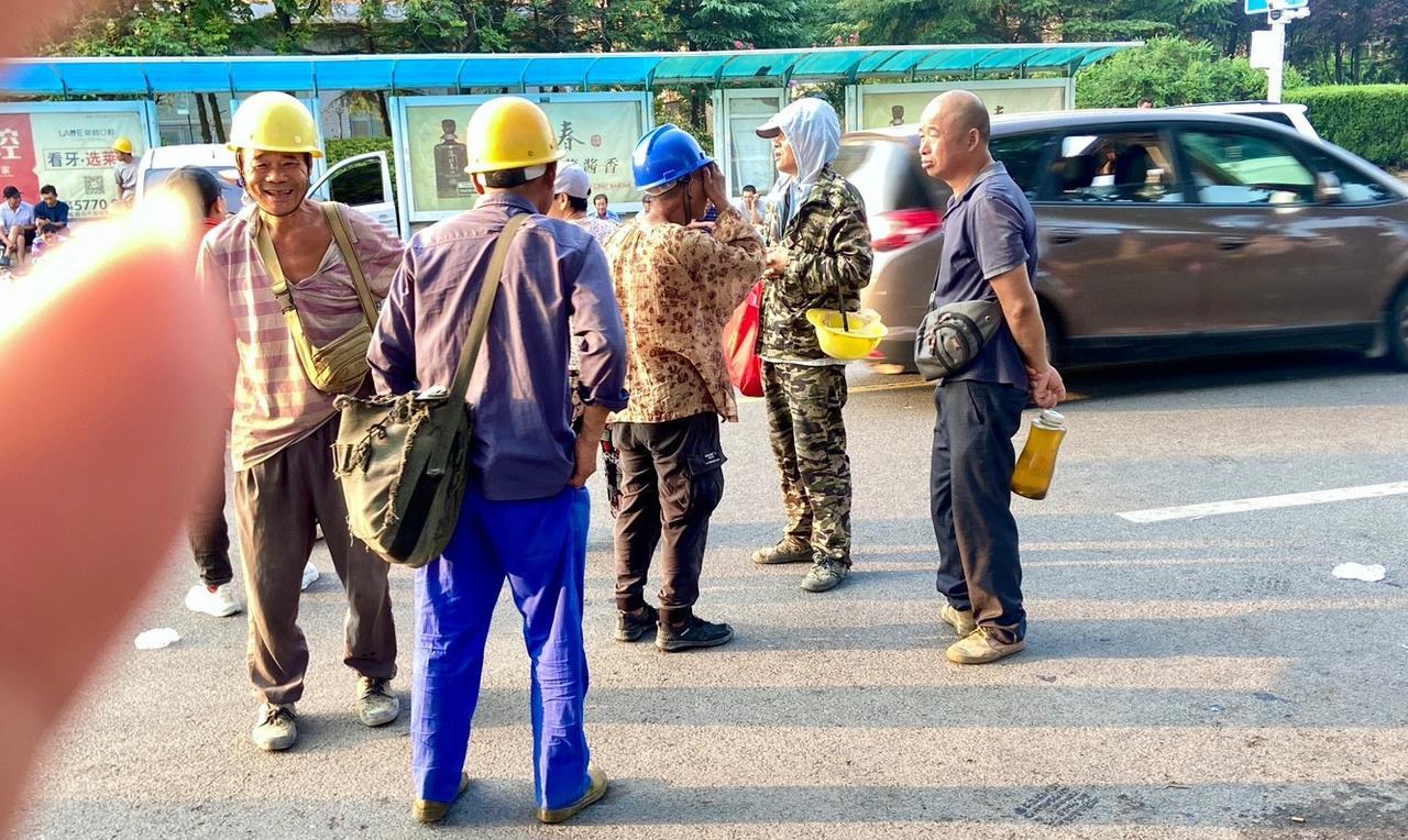 我所在的地方,是山东黄岛区的一个劳务市场。这些日子,我总在用手机镜头记录劳务市场农民工兄弟姐妹们找活干的日常。 眼下的工价,实在算不上太高,没技术的小工,一天的工钱大多在200元上下浮动,想再往上多要一点,难如登天。可就算天天都能找到活干,这笔钱扣掉每月固定的房租,再刨去三顿简餐的开销,手里能剩下的也不是很多。 技术工的情况稍好些,日结能有三百多元,但也未必能天天都会有活干。毕竟市场里人多活少,今天可能还在工地上忙碌,明天或许就得蹲在市场的角落里,陪着工具包等消息。这里起起落落生活,想从牙缝里省下些钱存起来,对劳务市场里的大多数人来说,都是件格外不容易的事。