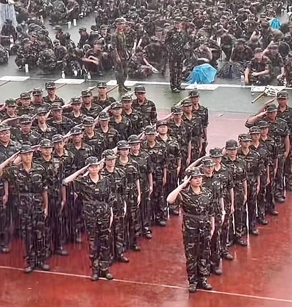 广西钦州第一中学校长胆子不小,高一军训汇演遇上暴雨,不让学生赶紧回教室也不让打伞,不怕家长投诉更不在乎被发到网上,硬是带着一群校领导坐在主席台上和学生一起淋雨(主席台没棚),由于雨太大所有人全部湿透,台上台下的坚持也让现场很多家长泪目,总算见到了军训该有的样子,“全国军训看广西”这句话的含金量再次提升。