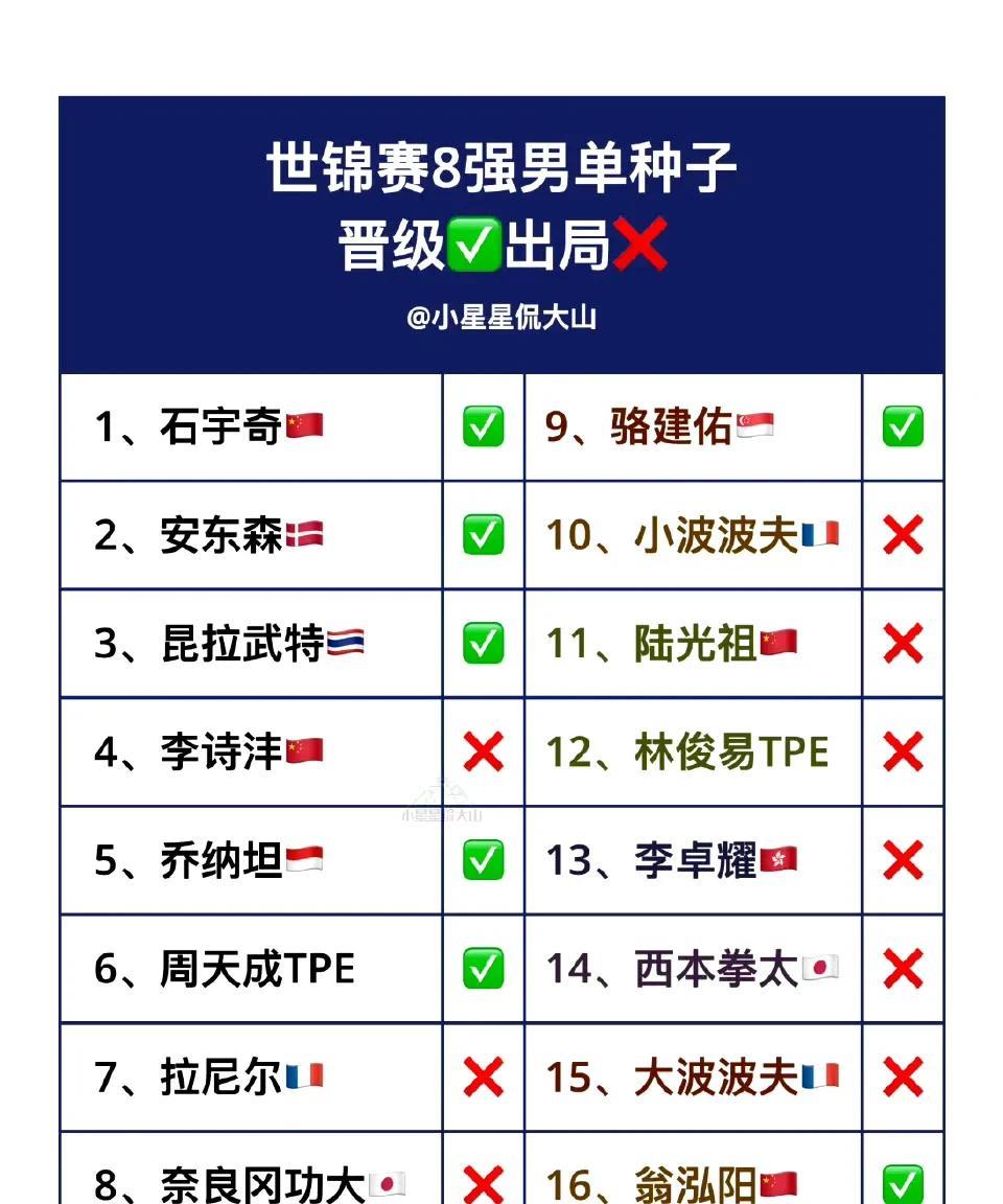 #2025年羽毛球世锦赛#最强黑马出现了,男单八强里唯一的非种子选手,看来陆光