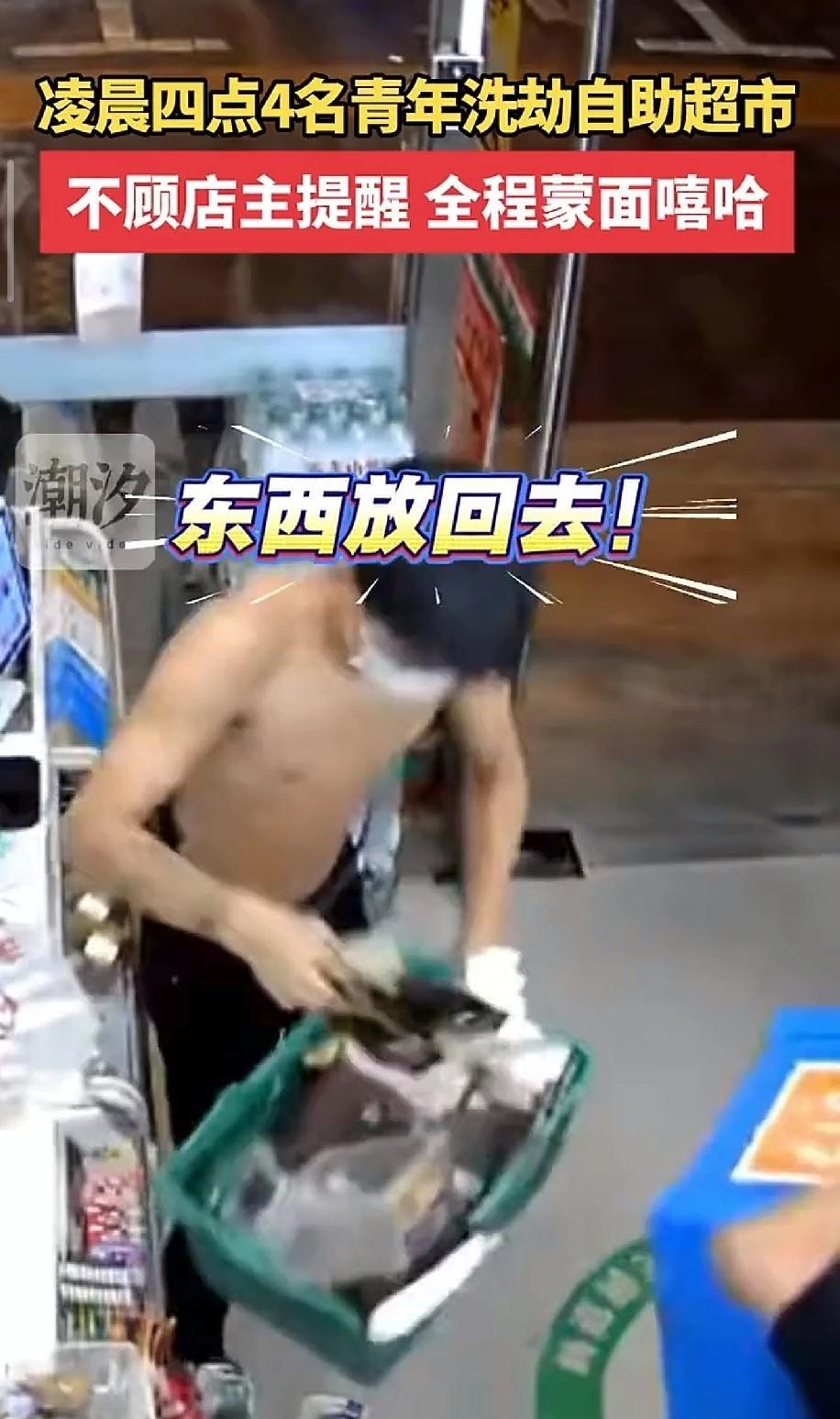 凌晨4名青年洗劫自助超市, 蒙面嘻哈,这事儿让人瞬间 联想到美国的“零元购”。