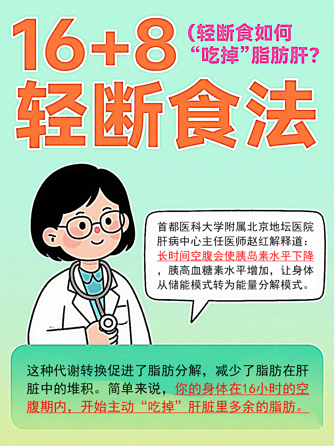 肚子上的赘肉还没减下去,体检又发现了脂肪肝?很多人以为必须严格节食才能改善,其实不然。最新研究表明,“16+8轻断食”仅4个月就能让肝脏脂肪减少24%!