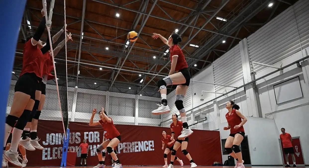 中国女排备战明天晚上打法国女排的比赛!吴梦洁这扣球高度有点恐怖啊,你看图二这张照