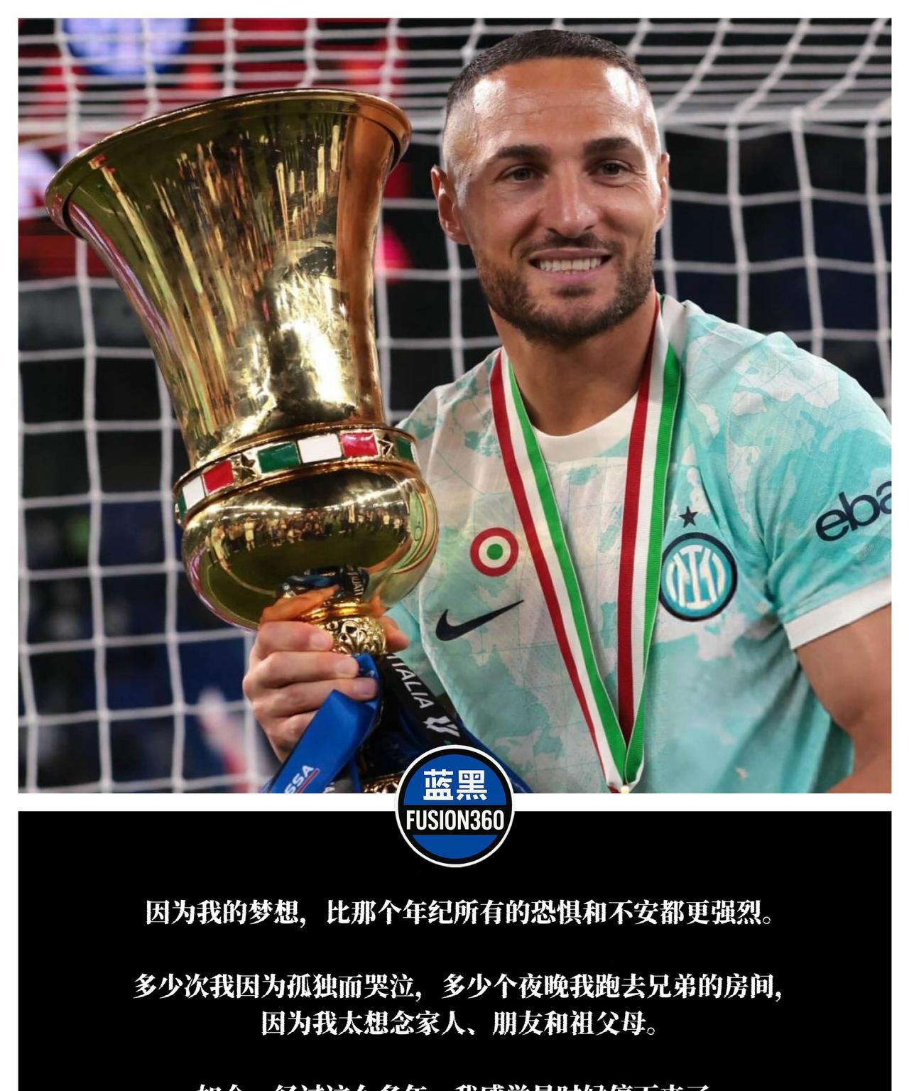 梅阿查的看台上,许多老球迷红了眼眶。 9年蓝黑生涯,284次出场,21球20助攻。他不是巨星,却是国米最可靠的“消防员”:哪里缺人,他就补上;什么时候需要,他就冲上去。 一座意甲,两次意大利杯,两次超级杯——奖杯的背后,是无数拼抢、铲断、头球,以及一次次倒在草坪上又爬起来的身影。 今天,国米告别的不只是一个后卫,而是那个“为蓝黑付出全部”的老兵。