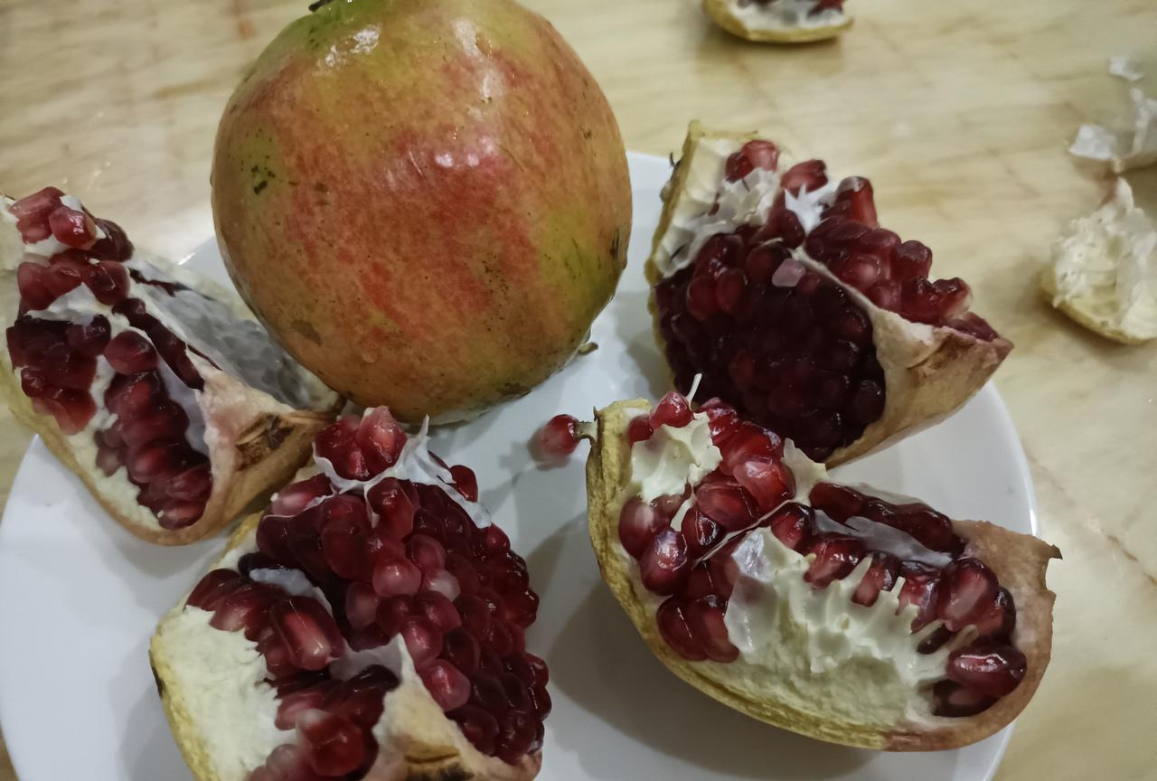#晒图笔记大赛# 这石榴可以,粒大水份足也很甜,就是有点小贵,要六块钱一斤,买三个花了十二块钱。