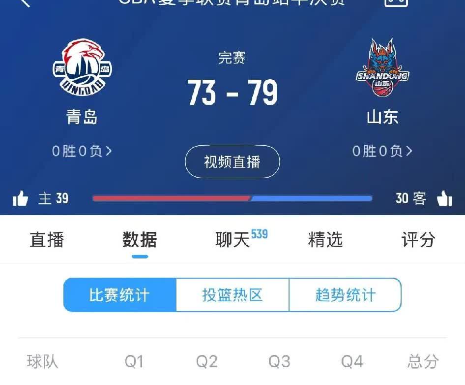 挺进决赛!山东79:73青岛 张旭暴走、状元给力、于氏兄弟可期 CBA夏季联