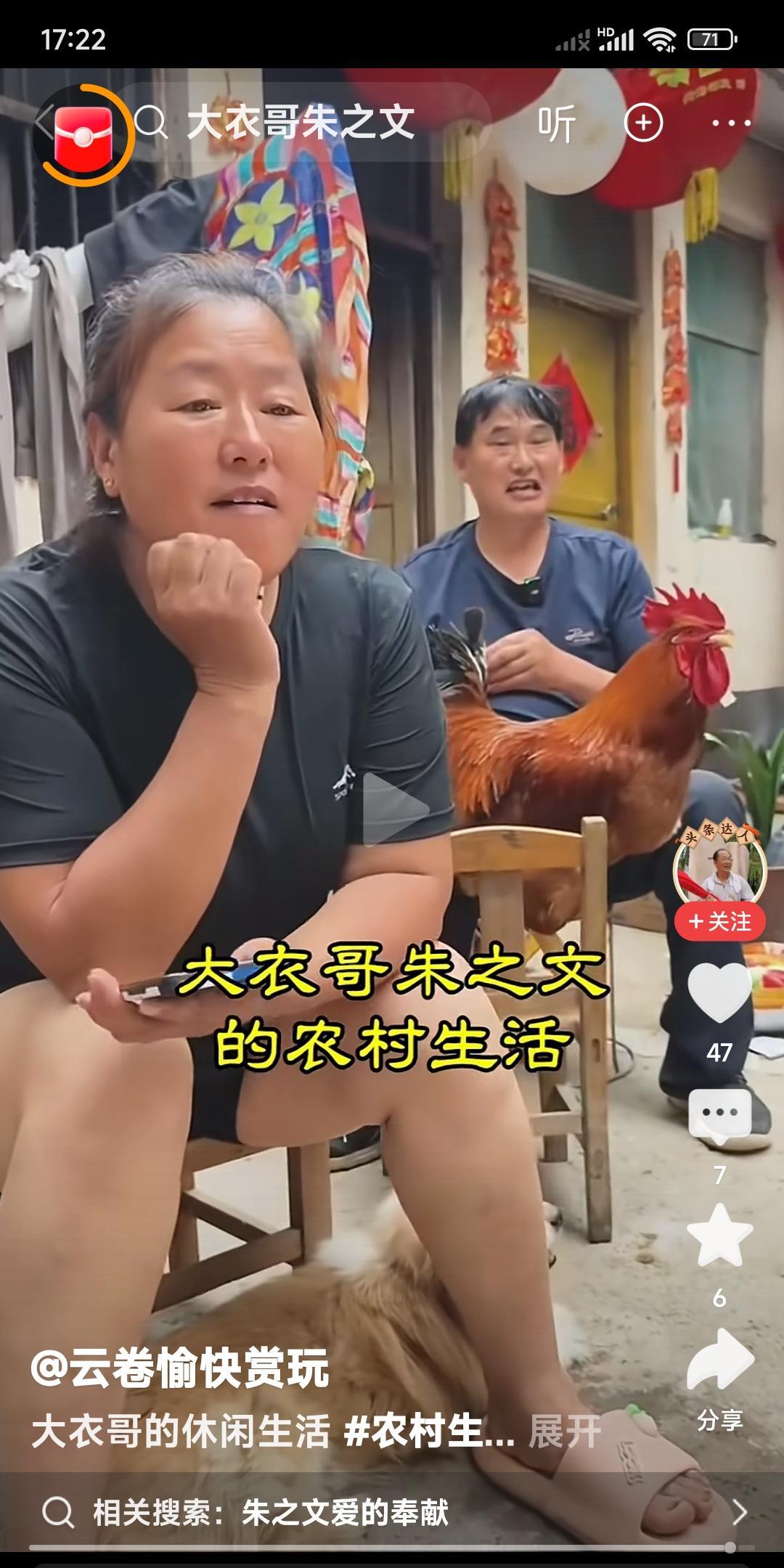 朱之文和大衣嫂家,是纯粹的农村家庭。 温馨又和谐的家庭氛围。 吃完晚饭两口子,坐在小板凳上闲聊。 朱之文抚摸着大公鸡的鸡冠子。 大衣嫂露着大腿,霸道的坐姿,屁股底下蹲着小狗。 烟火气十足的生活气息。 也是城市人向往的农村生活。