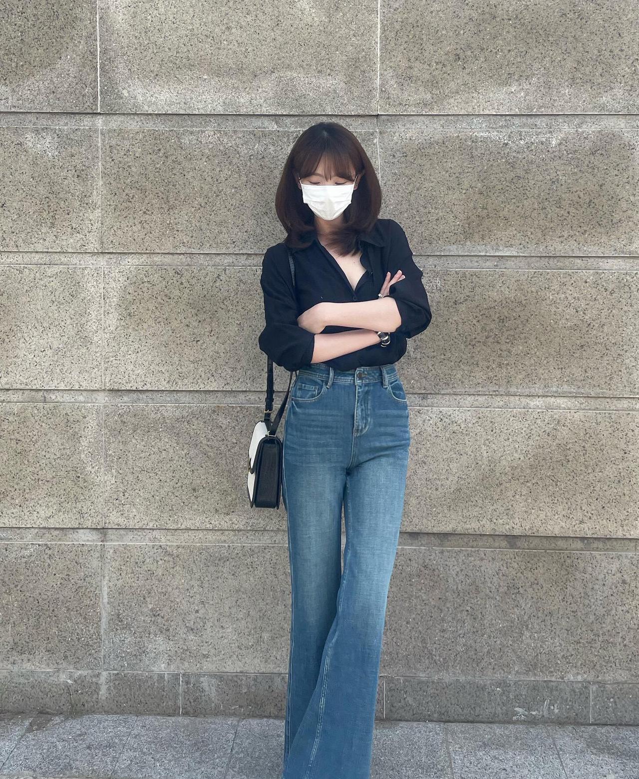 用黑衬衫穿出大女主风,通勤上班或逛街都能够提升时尚感,气场满满! 材质轻薄的黑色衬衫比较适合夏末初秋,挑选宽松的版型,增加慵懒松弛的氛围感。 下半身是一条高腰的拖地牛仔裤,搭配黑色的高跟鞋上下呼应,随性松弛又减龄,通勤休闲都能够轻松驾驭!