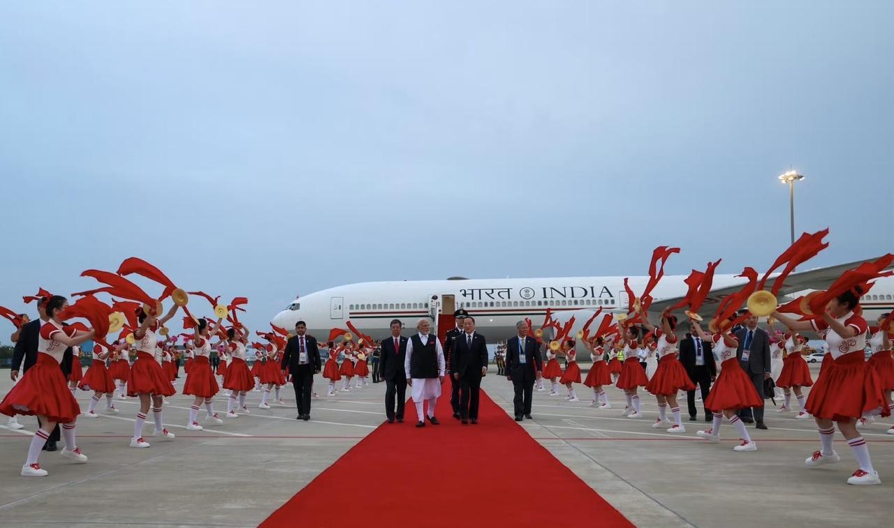 有红毯、有鲜花,莫迪很开心!印度总理莫迪抵达,中方特意为到访参加峰会的所有来宾安