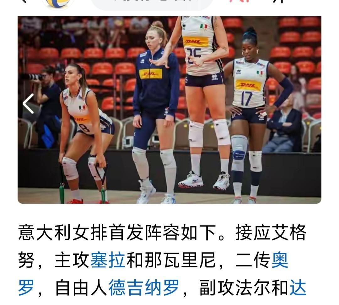 【姜,还是老的辣】 意大利女排3:0战胜德国女排打进八强,打到第三局,德国女排简直毫无招架之功。 原因很简单,意大利不光有艾格努,大家看看图二的场上队员名单就知道了,这是一帮成熟的久经战阵的队员,而非一帮替补的年轻才俊。 赵勇指导收割青苗,我当然不敢说揠苗助长,但在经验方面,如果现在这支中国女排遇到现在这支意大利女排,,,,, 吾不知其可也!