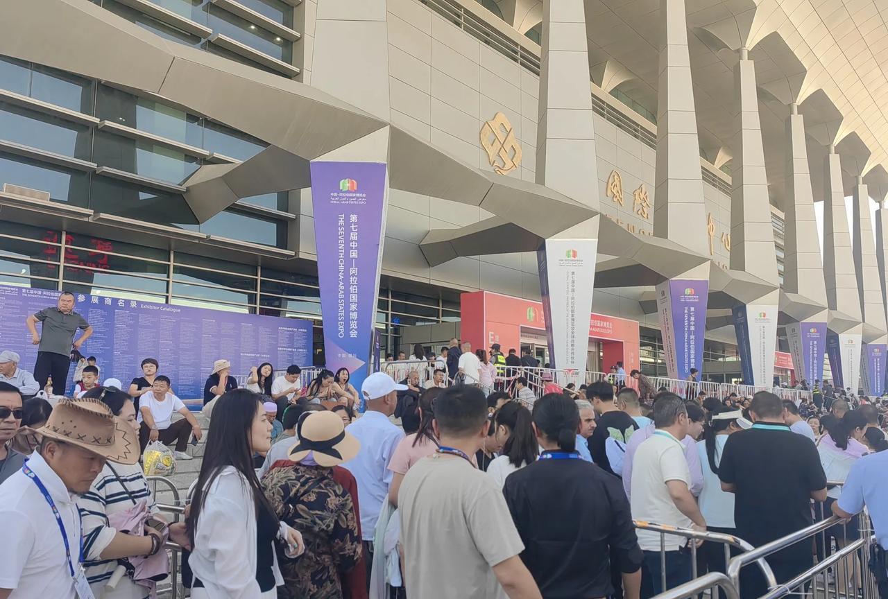 中阿博览会在银川国际会展中心举行。我了个天,那人多的真是排队往里进,吵吵嚷嚷,摩