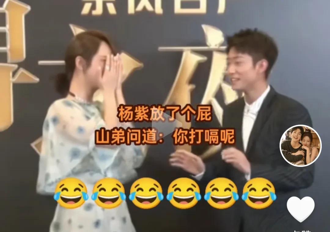 美女明星杨紫与山弟同台时,放了个屁。山弟调侃她打嗝。把杨紫羞的不行,追着山弟打。