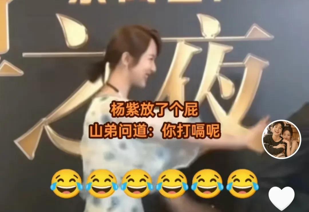 美女明星杨紫与山弟同台时,放了个屁。山弟调侃她打嗝。把杨紫羞的不行,追着山弟打。这一幕倒显得杨紫更可爱了。山弟有急智,马上改口说是他放的。评论区好多人质疑如此天仙的美女怎么会放屁?其实美女也会放屁,只是屁声婉转,而且还是香的。