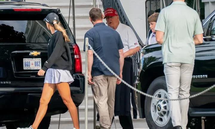 川普带孙女去打高尔夫,力破健康问题的造谣。 自周二的内阁会议以来他一直没有公开露面,副总统万斯告诉《今日美国》自己已经做好接班的准备,关于老特生病的谣言在社交平台愈演愈烈。 川普今天被拍到身穿白色polo衫与孙女一起上车前往弗吉尼亚州斯特林的高尔夫俱乐部,对他健康问题的阴谋论进行抨击。