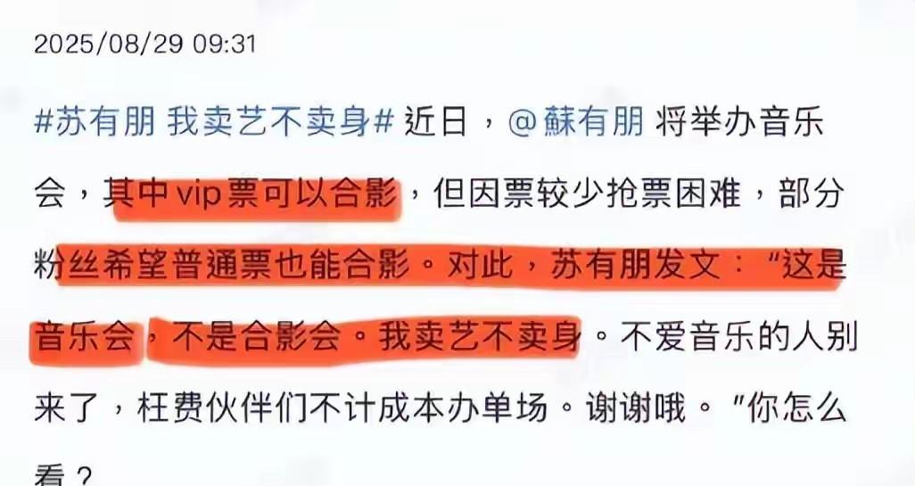 苏有朋发长文道歉,“卖艺不卖身”言论后,为了继续捞钱终究选择了“卖艺又卖身”? 苏有朋作为少年成名的“小虎队”成员中的“乖乖虎”,出道时就是学霸,所以后来也是“小虎队”三个人中发展的最好的,三人单飞后,影视歌多栖发展。 但是也正是因为他“聪明”的人设,也是让他早就很受争议,比如每逢需要艺人表明态度的时候,他总是装鸵鸟的那一个。而这次事件的爆发,应该才是他人品的真实表现。那就是我既要你的钱,还打心底里看不上你。就好比他一边在大陆捞金一边还看不上大陆,然后还要用暧昧的态度谄媚湾湾当局一样。 现在看着事件上了热搜,甚至影响到他后续的捞金之路了,他半夜出来发长文道歉。但是聪明的人应该知道,前面的骂街和现在的找补,哪个才是真实的他! 对此,朋友们怎么看呢?你感觉可以原谅他吗? 点点关注不迷路,文章右上角关注下小编账号,感谢支持与厚爱。 #苏有朋出场费# #苏有朋红毯照# #苏有朋# #苏有朋明星版# #苏有朋独唱# #苏有朋演技# #苏有朋歌曲# #苏有朋北京巡演#