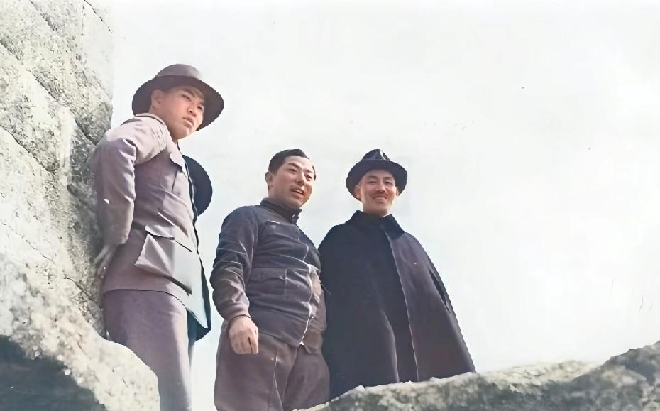 照片摄于1936年11月,即西安事变前一个月,张学良将军陪同蒋游览西岳华山。 第一张是广为流传的照片于华山苍龙岭石阶上拍摄,蒋身后是钱大钧和蒋孝先。 照片中,蒋面带微笑,张学良却眉头紧锁、满脸疲惫,二人肢体看似亲密,实则已貌合神离。究其根本,是张学良不满蒋逼迫他“围剿”红军,他从心底反对内战。晚年接受采访时,他也多次确认发动“西安事变”是为了停战。彼时的蒋恐怕怎么也想不到,不久后自己会被这位貌合神离的“盟友”扣押。