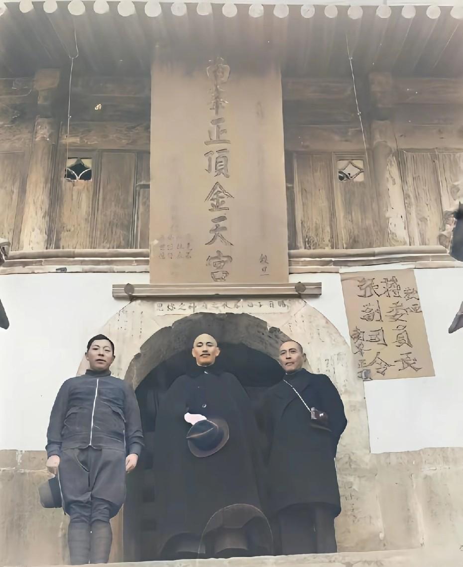 照片摄于1936年11月,即西安事变前一个月,张学良将军陪同蒋游览西岳华山。 第