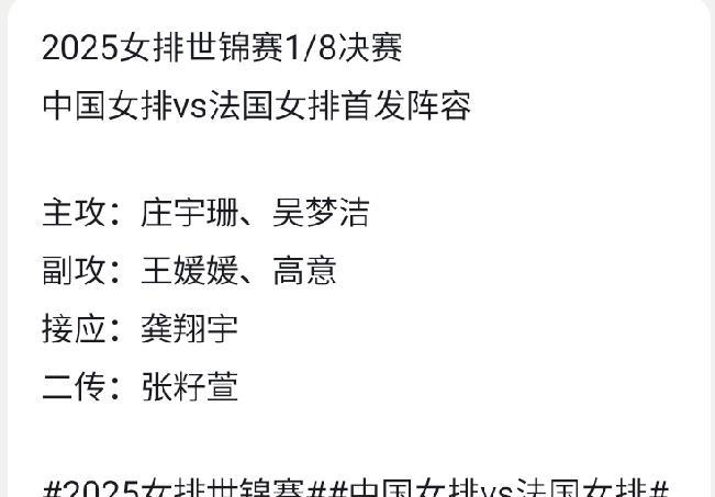2025年世界女排锦标赛16进8淘汰赛中国女排对阵法国女排的比赛即将开始,现在双