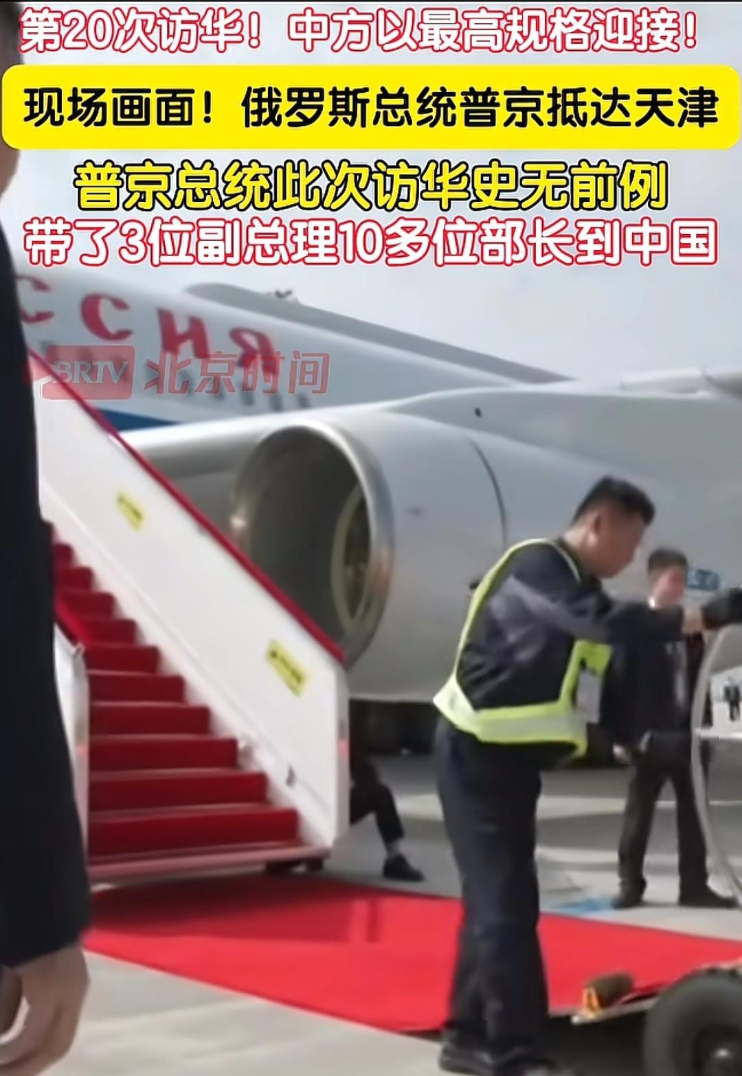 8月15日,普京访美,几名美国大兵跪在地上铺红地毯在网上引发批评。今天普京抵达天津,铺红地毯方式过于先进。只见一名穿反光背心的机场勤务推着机器,机器缓缓向下推出地毯。 铺地毯和收地毯已经不需要人跪地上,而是用机器来完成。
