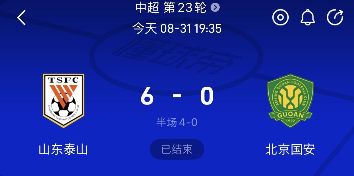 四月份国安 6:1 大胜了泰山,如今八月底,泰山把场子又给找回来了,6:0 大胜了国安~ 双方这一来一回,真是杀红了眼,算是基本打了个平手,欲分胜负,只能下赛季再战了[狗头] 而且这么看,未来两支球队的大战,有点巴萨和皇马的意思了,谁也不服谁,下一次的碰面,肯定还是火星碰地球!