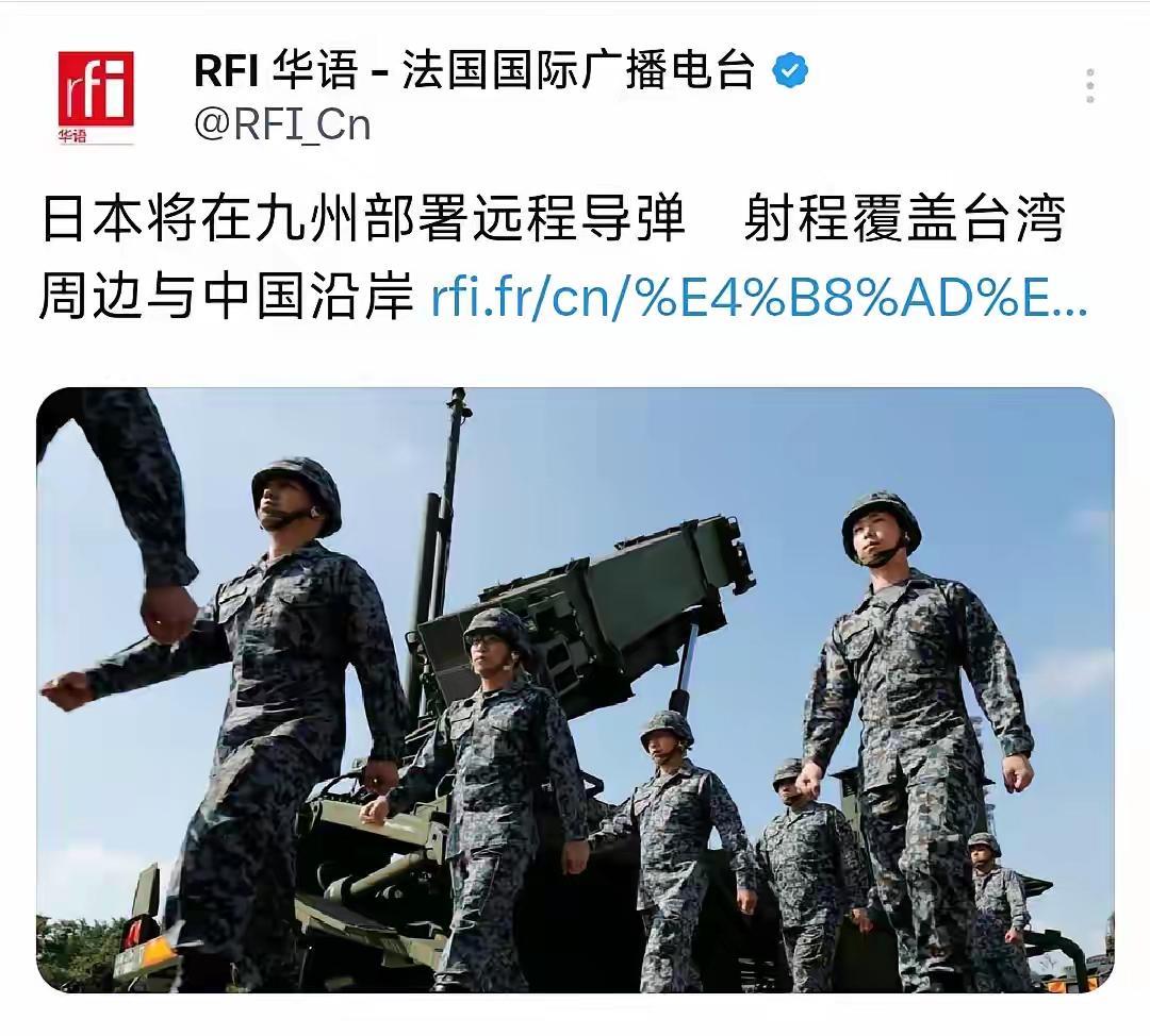 没有日本人不敢干的事! 法媒:日本竟然在九州部署远程导弹了,其射程覆盖台湾周边和大陆沿岸。 当然这只是法媒的一面之词,有待探实。 日本作为战败国,无权部署远程导弹。因为远程导弹属于攻击性武器装备! 连中程导弹,小日本也没有资格部署。更不用说远程导弹了。 当然,美国如果不严加管教日本了,日本人连核武器也会造了。到时候,日本军国主义必然报复它的敌人,美国首当其冲!