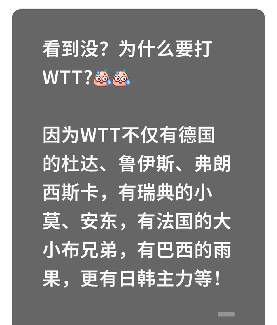因为WTT不仅有德国的杜达、弗朗西斯卡,鲁伊斯(徐瑛彬3-0罗曼·鲁伊斯,不得不