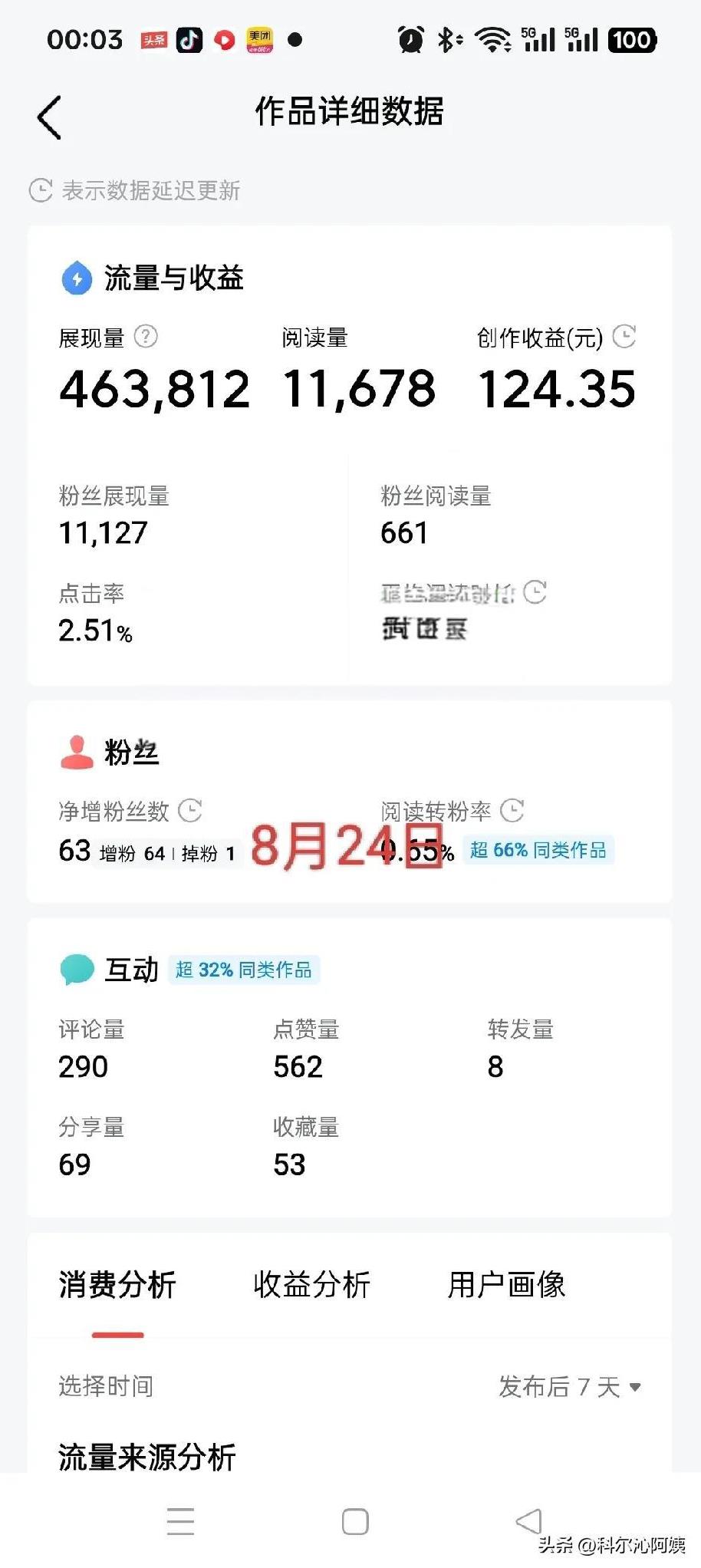 第一张图是我去年7月份一篇文章的数据,展现量91.6万,阅读量10.4万,创作收