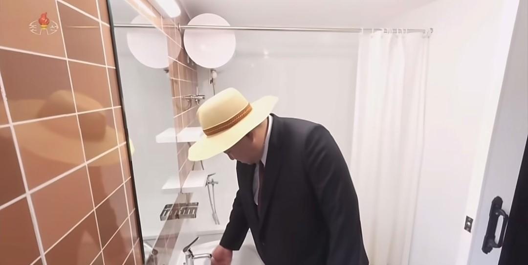 金将军到养殖事业所渔民的家参观! 渔民的家是政府免费盖,渔民直接“拎包入住”。金将军到一家已经入住的渔民家时,一家三口在门外等候,让二楼参观,将军让渔民家小女孩走前面,扶着她的手臂显亲民。 参观完了离开时还特意到洗手间,打开水龙头看有没有水,这就是细节。